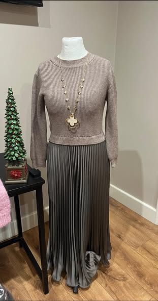 🔥Black Friday Promotion 50%OFF🔥Women's solid color Long Sleeve Jumper & Pleated Bottom Dress